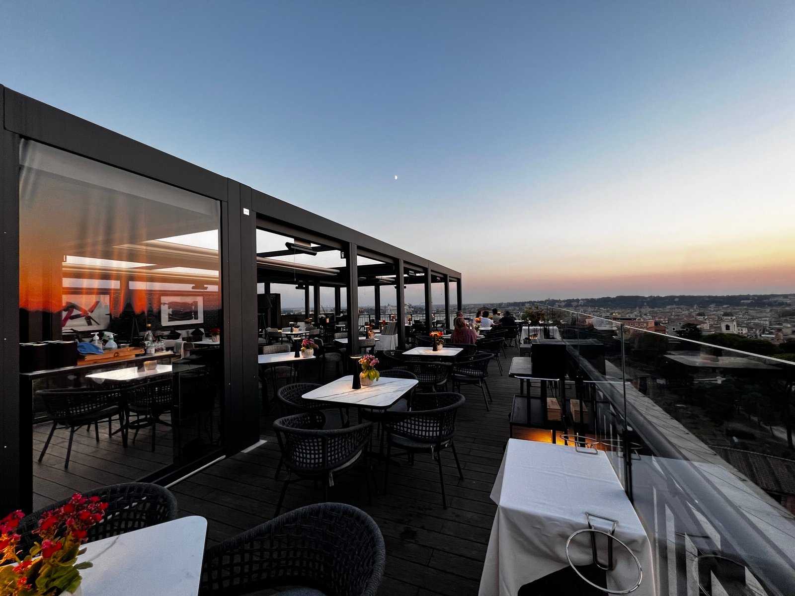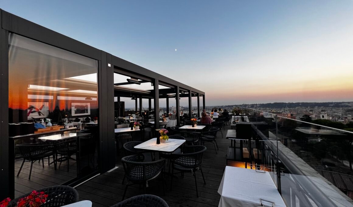 U Visionary Rooftop in Rome redefines city elegance. Set against a backdrop of breathtaking skyline views, this rooftop gem seamlessly blends modern design with timeless charm. Whether you’re sipping cocktails under the stars or taking in the city’s beauty from above, U Visionary Rooftop offers a truly visionary experience in the heart of Rome. With vistas extending over the Altar of the Fatherland and the bustling main street, it’s a front-row seat to the city’s pulse and grandeur. It is located at the top of U Visionary Hotel.